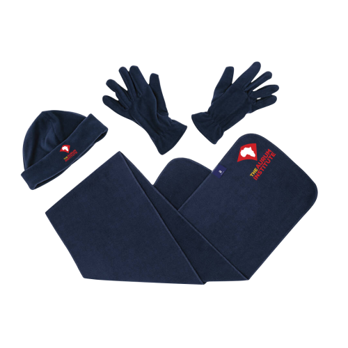Get the 3 Piece Glacier Set and get triple the warmth! The set includes a classic beanie with turn-up brim, a scarf with a Barron flag label and fitted gloves with elastic cuffs, all made from 210g 100% polyester fleece. Available in plain colours